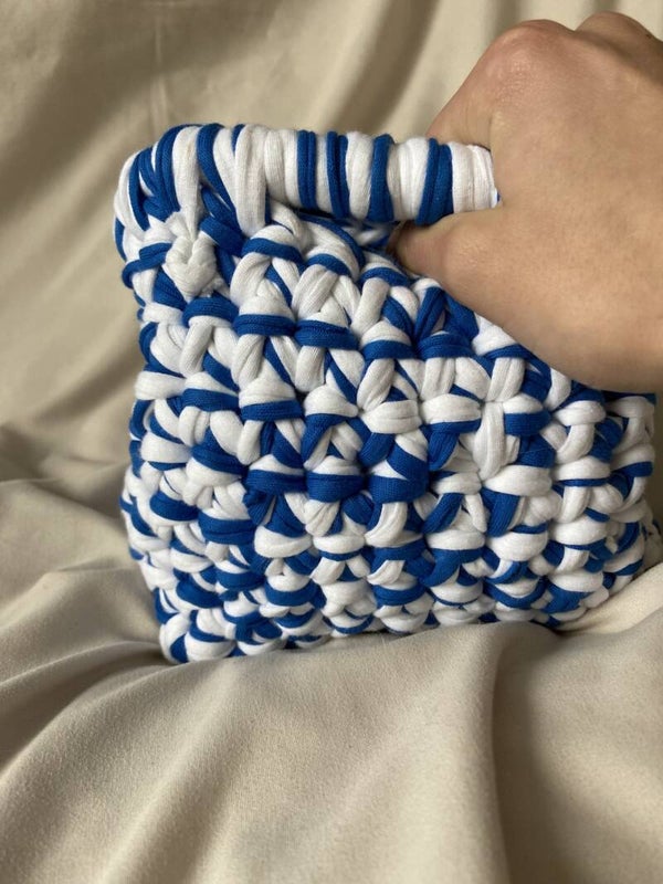the mini clutch is perfect voor een avondje uit. De kleuren zijn donker blauw en wil. De Afmetingen zijn 16 bij 14 bij 16