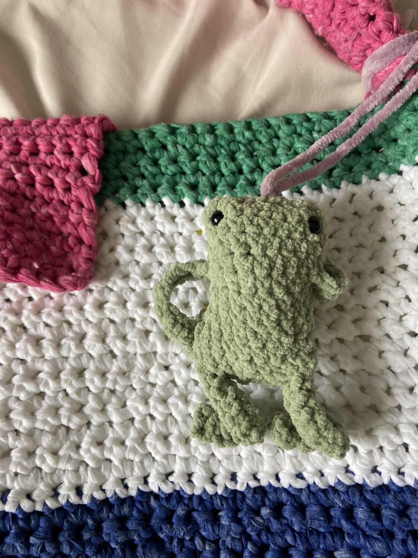 Deze tas is perfect op het strand! Afmetingen zijn 60 bij 37 cm handvat is 5 bij 74 cm.